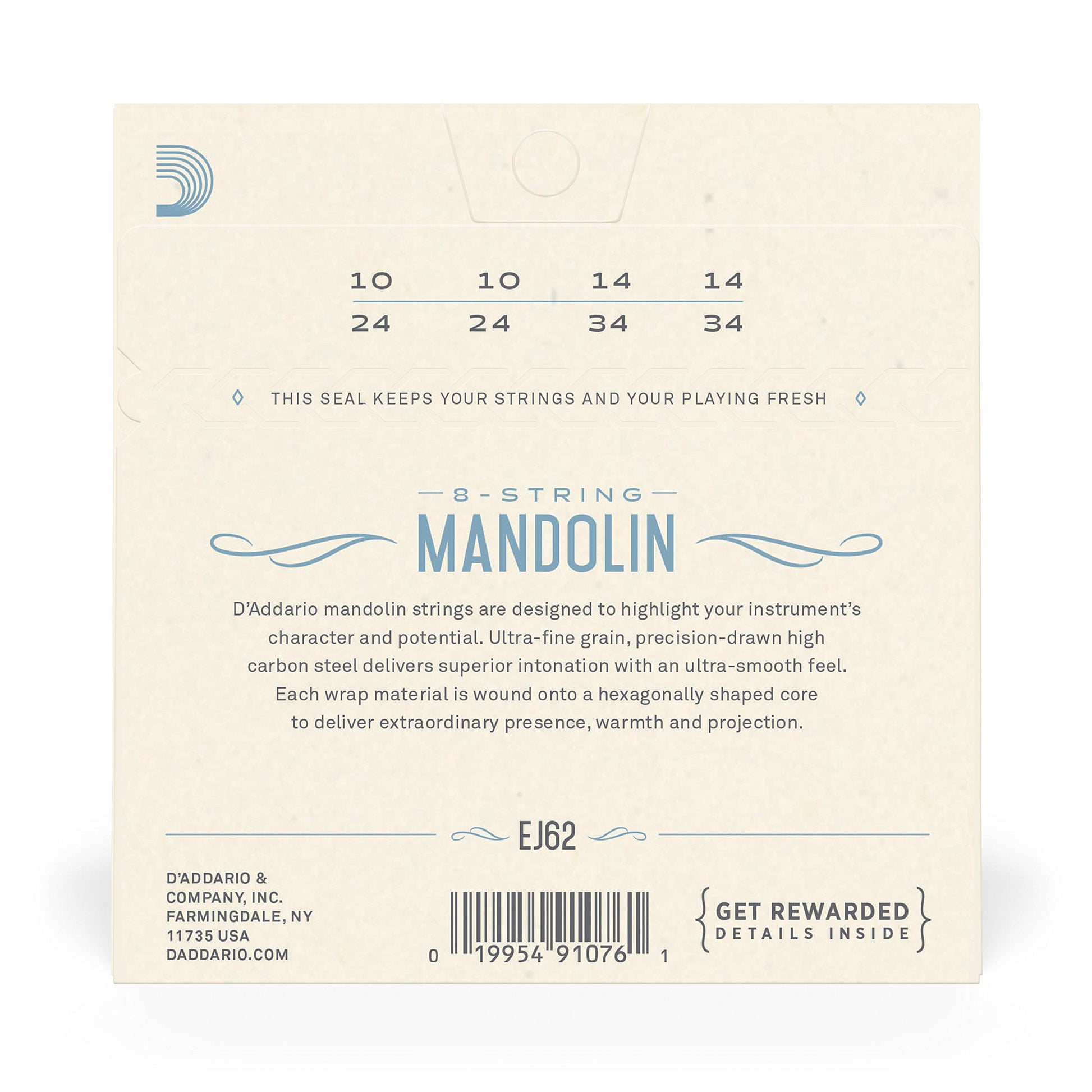 D'Addario EJ62 80/20 Bronze Mandolin Strings, Light, 10-34
