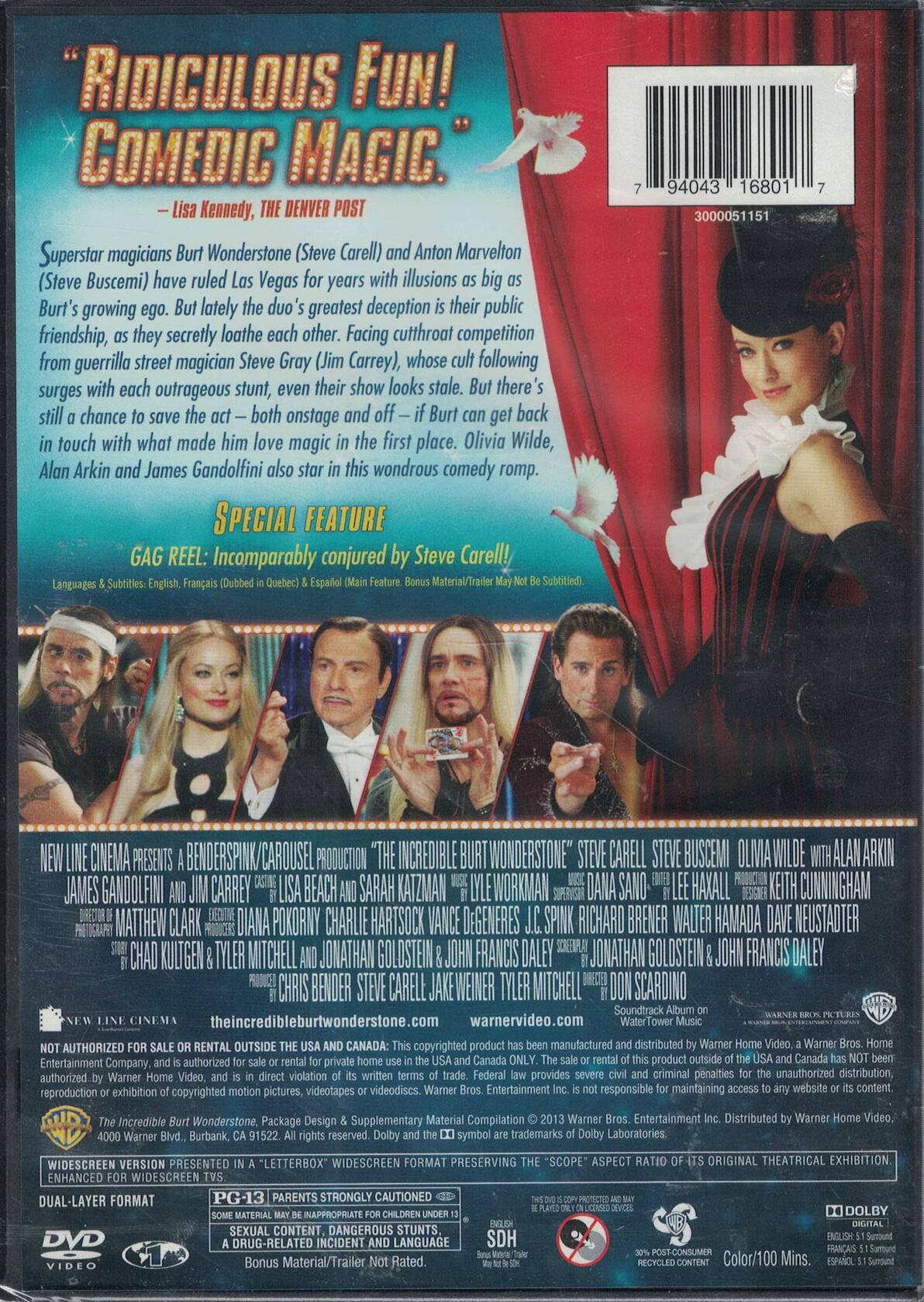 Burt Wonderstone, The Incredible (Wal-Mart-VUDU/DVD+UltraViolet)Superstar magicians Burt Wonderstone and Anton Marvelton have ruled the Las Vegas Strip for years, raking in millions with illusions as big as Burt's growing ego. But lately the duo's greatest deception is their public friendship, while secretly they've grown to loathe each other. Facing cutthroat competition from guerilla street magician Steve Gray, whose cult following surges with each outrageous stunt, even their show is starting to look stale. But there's still a chance Burt and Anton can save the act-both onstage and off-if only Burt can get back in touch with what made him love magic in the first place. ]]>FEATURES